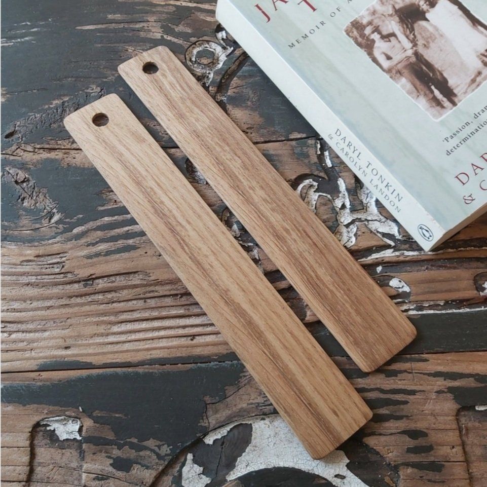 He was trying to eke out as much as possible from the tree he had felled, thus looking for increasingly smaller and smaller things to make, out of smaller and smaller pieces of wood. This is why he contacted me about bookmarks.